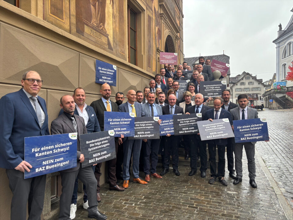 Die SVP Kanton Schwyz hat ihre Volksinitiative am 14. November 2024, nach nur wenigen Wochen Sammelzeit, mit über 3’000 Unterschriften eingereicht. Die Initiative verlangt, dass sich der Kanton Schwyz gegenüber dem Bund klar gegen den Bau von Bundesasylzentren auf Kantonsgebiet ausspricht.